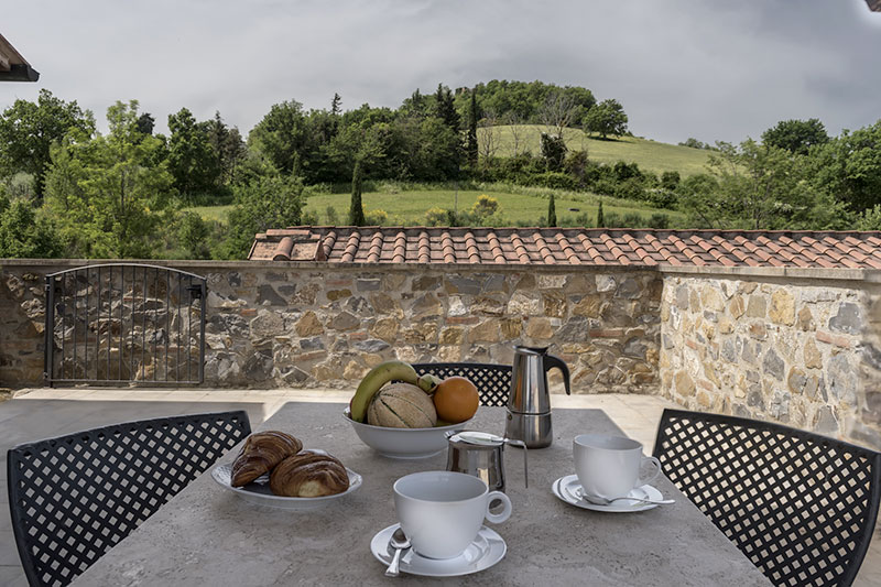 Questo appartamento offre un’ampia e bellissima Terrazza in pietra di 60 mq con Veranda in legno pregiato ed attrezzata con tavolo, sedie e lettini prendisole. Il posto ideale dove poter godere dello splendido paesaggio della campagna toscana e della riservatezza per una romantica cena sotto le stelle accompagnata da un bicchiere di ottimo Vino Chianti.